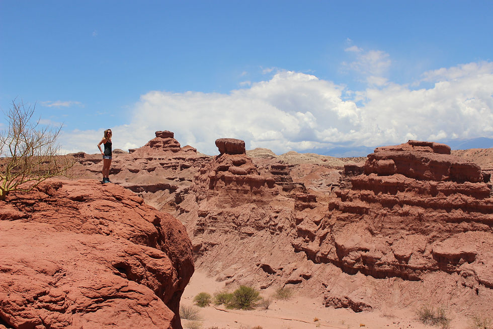 Nous continuons, toujours dans ce désert et ces falaises rouge, jusqu'”El amphithéâtro” c'est un amphithéâtre (trop dure la traduction) naturel et gigantesque, des musiciens utilisent l’acoustique pour jouer de la musique, j'ai acheté le CD du monsieur qui jouait de la guitare 🎸, il y avait des filles aux percussions et un mec au violon. Des oiseaux se battaient là haut, ça faisait un bruit d’enfer.
